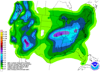 Our first storm will open up as a trough of low pressure and pretty much wash out as it moves east towards us today into tomorrow evening. As it does so it will scoop up a fairly decent amount of mid-high level moisture from off the eastern Pacific. A few scattered rain showers and an isolated thunderstorm or two will dot the landscape late this afternoon into tomorrow evening. Our storm total rainfall amounts should be less than a quarter of an inch for those of us lucky enough to get wet.