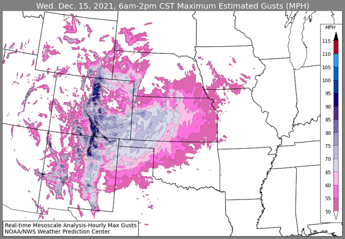 Wednesday's high wind event was one for the record books. Southwest to west wind gusts of 75 to 100 mph or higher were measured in New Mexico, the Texas and Oklahoma Panhandles, Colorado, Kansas, and Nebraska.