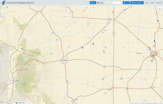 A few widely scattered thunderstorms developed across Southeastern New Mexico Easter Sunday afternoon and again later that night. Radar estimated that several of these thunderstorms Sunday night produced moderate to heavy rainfall with estimates ranging from .50" to 1.50". As is often the case the heaviest of these rains missed any online reporting rain gauges.